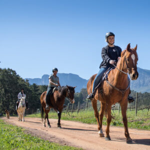 Your romantic experience begins as you ride out with your sweetheart into a beautiful nature reserve, where wildlife is viewed on the ride. The horseback safari will arrive at a surprise picnic spot after 1 hour. We set up a lovely wooden table with non alcoholic sparkling wine, a snack platter, a box chocolates, plus a bunch of flowers. Enjoy your private picnic for approx 40 mins and then ride back to base. We offer a standard platter for picnics – e.g Biltong, Crackers, Cheeses, Dips, Fruit etc – You are welcome to bring any additional food/beverages with you in a backpack.